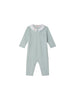 The Anton baby pajamas compete in charm with their contrasting collar embroidered by hand on the theme of the sea. This comfortable interlock model has a patched chest pocket.