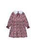 La Coqueta's ditsy prints pay homage to love for a bygone era, with our devotion to nostalgia and finery shining through in the Leana Girl Dress. This stunning girl's dress is cut from pure cotton and decorated with a stunning floral pattern exclusive to La Coqueta, in delicious hues of soft green and ivory on a full-bodied burgundy base. It has a charming layered Peter Pan collar, delicately trimmed with piping and a classic burgundy cotton velvet self-tie bow at the neckline. It has long sleeves finished with velvet bows, and a raised waist that creates a fit-and-flare silhouette, complemented by a long, flowing skirt. It buttons at the back with signature mother of pearl buttons and is fully lined with pure cotton for extra warmth and comfort all season long.