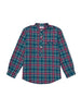 Celia Muñoz and the La Coqueta team effortlessly refine each silhouette over the years, tailoring every piece to ensure countless wears all season long. The Mateo Long Sleeve Boy Shirt is no exception, crafted from a super soft cotton-blend that is tailored with a touch of polyester for extra durability, and printed with a charming green tartan check. It features a stylish mandarin stand collar, a classic long-sleeve popover silhouette with mother of pearl buttons, and a classic centre box pleat for a relaxed fit that allows for a range of motion, perfect for little boys on the go. It has a curved hem and a single rounded one-button cuff, with attached buttons at the elbow to roll up the sleeves for an alternative, more casual fit.