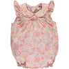 This enchanting romper with a peter pan collar and frill detail shoulders comes in the striking coral colourway, exclusively chosen by Olivier London with Liberty Fabrics.