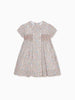The Arcadia Girl Hand Smock Dress is an iconic style for La Coqueta, returning each season with a fresh new update for its new chapter of wearers. Crafted from pure cotton, it is decorated with hand-drawn floral motifs in a delicate colour palette of green, blue and baby pink. It has a panel down the yoke with signature mother of pearl button details, and intricate hand-smocked detail across the empire line waist, traced with geometric embroidery in contrasting thread. Finished with short capped puff sleeves, it has a charming Peter Pan collar and a long floaty skirt. Fasten at the back with mother of pearl buttons, and adjust the fit with the self-tie floppy bow.