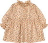 Dress with ruffled stand-up collar and button placket on the front. Embroidery finish in a pale floral with sleeves tightened with elastic.