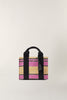 Striped nylon canvas shopping bag with canvas woven handles. Height 25cm, width 28cm, depth 10cm. 100% Polyamide/Nylon.