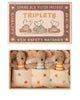 Now you can have 3 baby mice at the same time. The triplet baby mice are carefully snuggled in their matchbox bed in a warm sleeping bag. They all have their own pacifier and they sleep tight side by side.