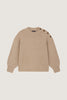Loose-fit beige wool jumper, buttoned on the shoulder. Can be worn oversized.