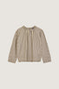 - Topstitched yokes on the shoulders and light gathers at the front neckline
